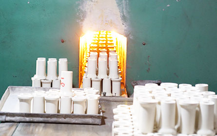 配料—混炼—过筛—成型—自然晾干—380℃烘干—组装锆芯—120℃烘干—磨制—80℃烘干—抹面—晾干—包装—打托盘—发货