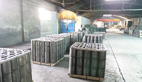 配料—混炼—过筛—成型—自然晾干—380℃烘干—浸渍沥青—清除表面沥青—磨制—80℃烘干—抹面—晾干—包装—打托盘—发货